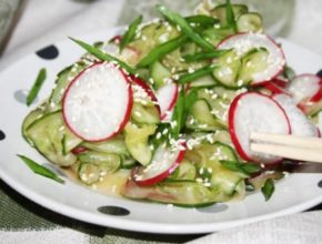 Яркий, легкий и вкусный летний японский огуречный салат освежит и раззадорит аппетит! Подайте его в качестве апитайзера.